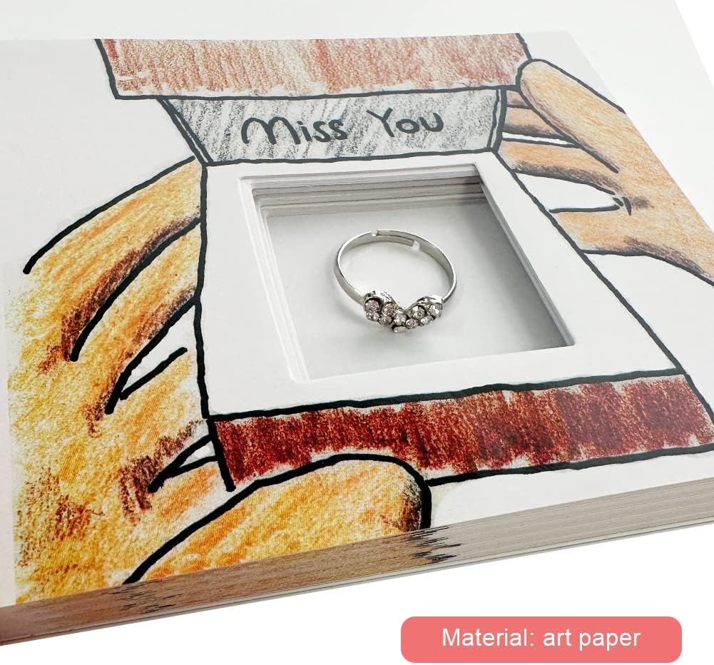 The first page is a blank paper, you can leave a sweet message you want for your lover with a marker pen.ย The last pages of book are well designed with holes to hide your ring.